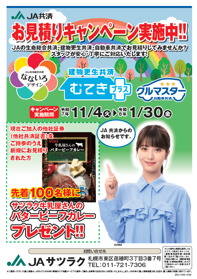 JA共済のお見積りキャンペーンのご案内を掲載しました。